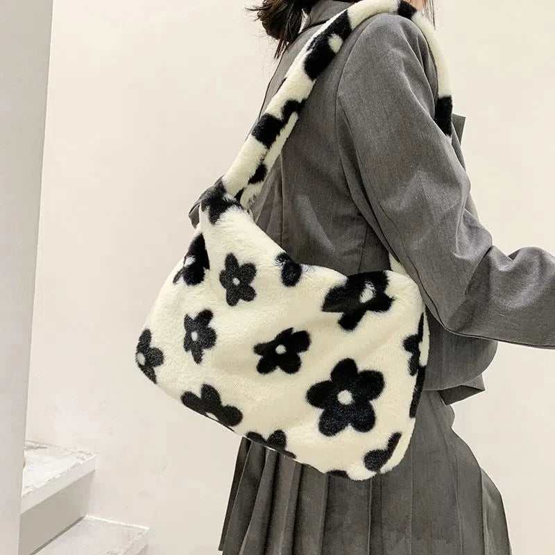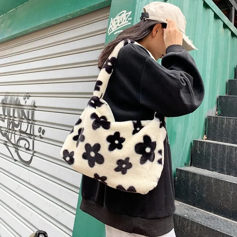 Stay stylish and organized with this soft plush shoulder bag. Perfect for autumn and winter seasons, this handbag offers a large capacity for all your essentials.