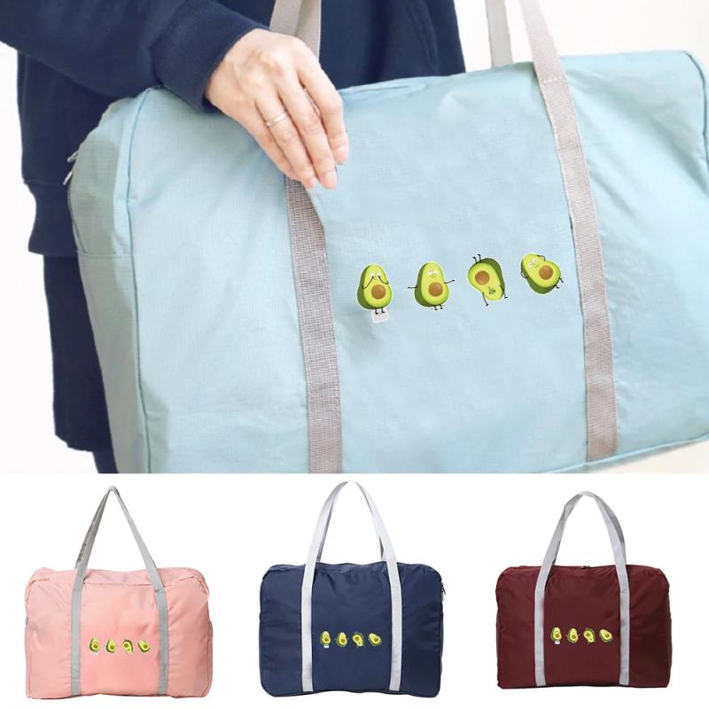 This unisex outdoor camping travel organizer handbag features a fun avocado print, folding design, and zipper closure. It offers a large capacity for storing accessories and luggage.