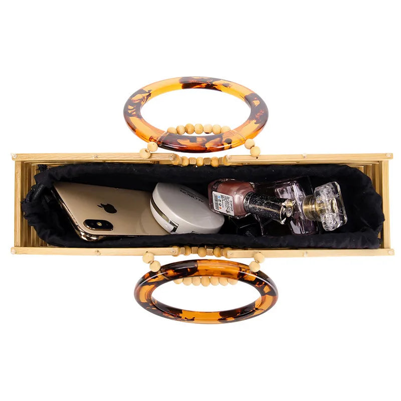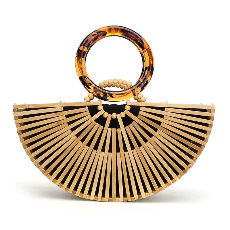Bamboo Woven Bag Acrylic Handbag European American Retro Beach Bag
