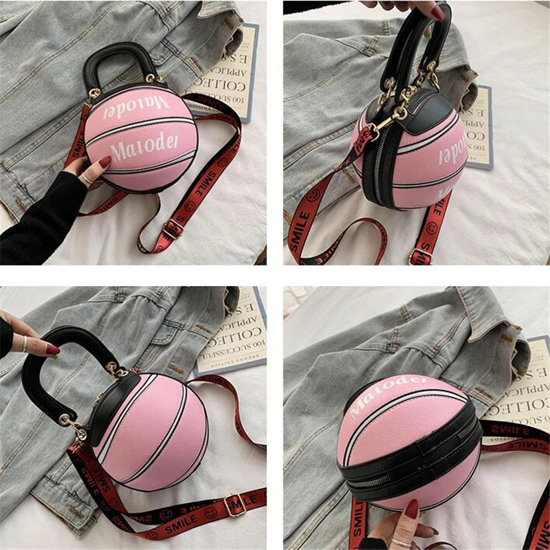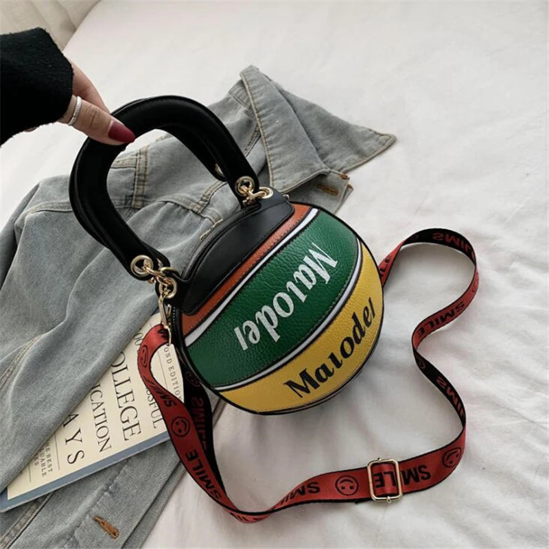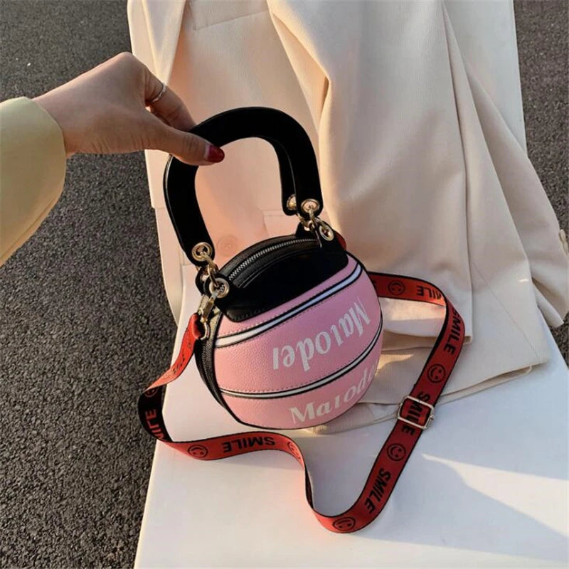 Basketball Shape Female Tote Bag Handbag Round PU Shoulder Messenger Bag