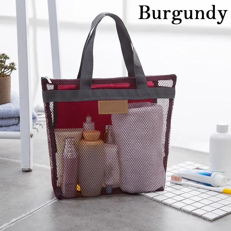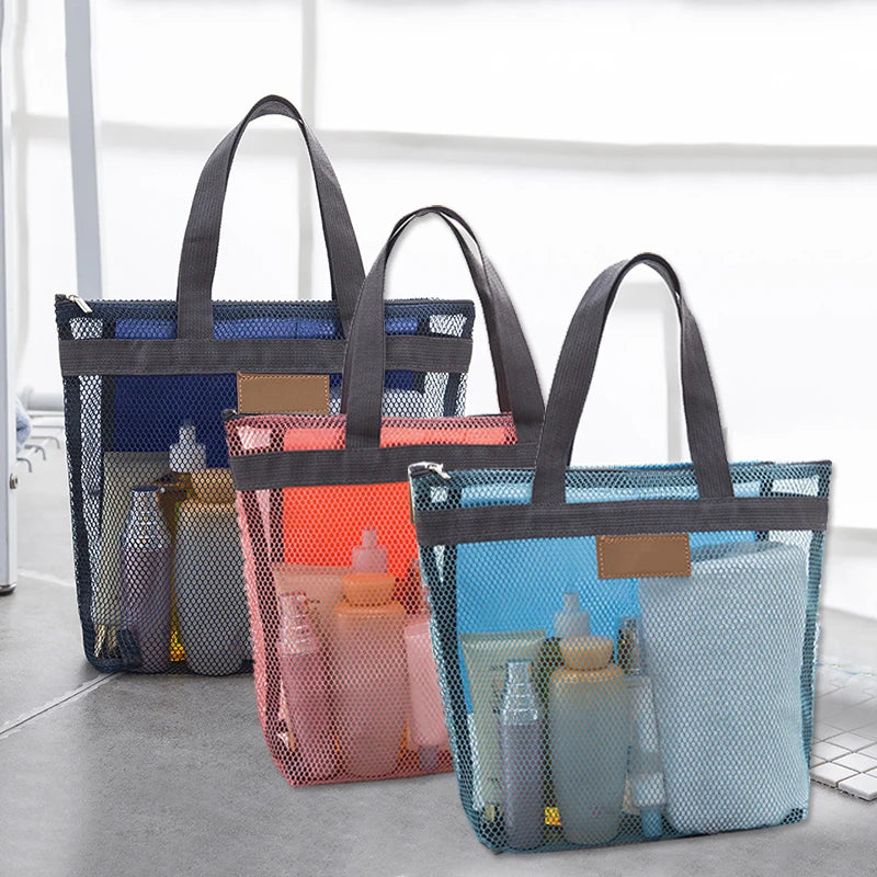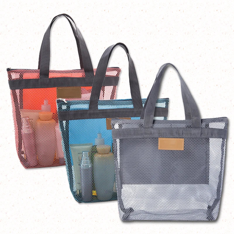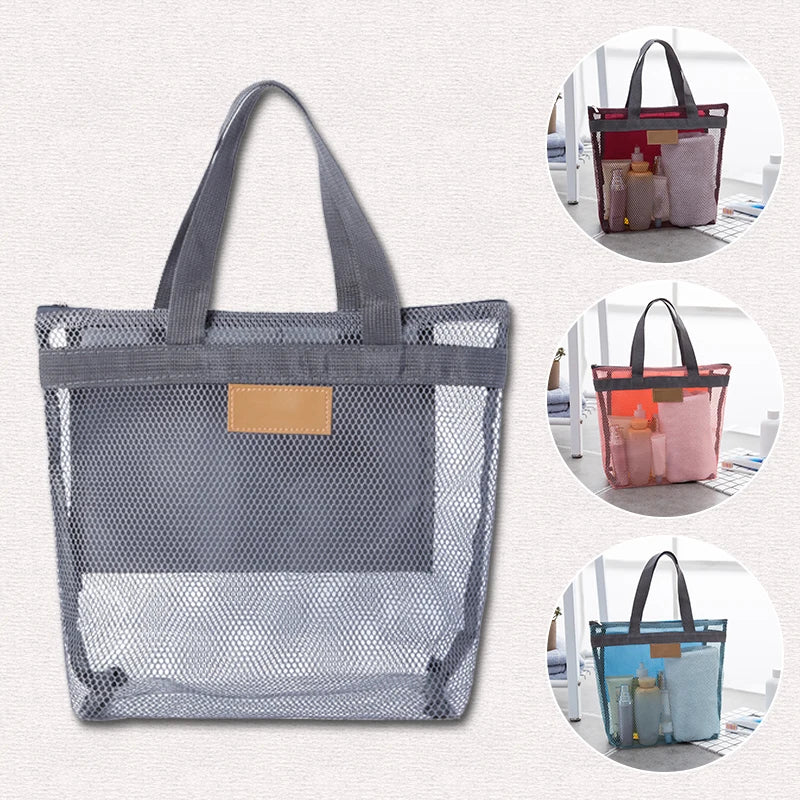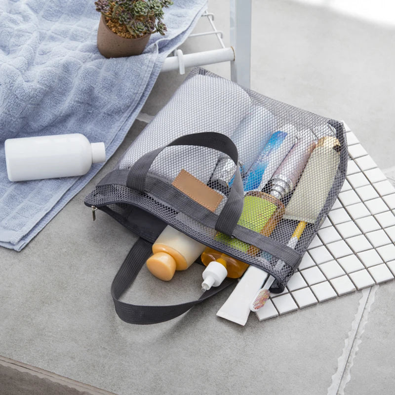 This versatile mesh travel pouch is perfect for storing your essentials when going to the beach, gym, or on a trip. It features a wet and dry separation design to keep your items organized.