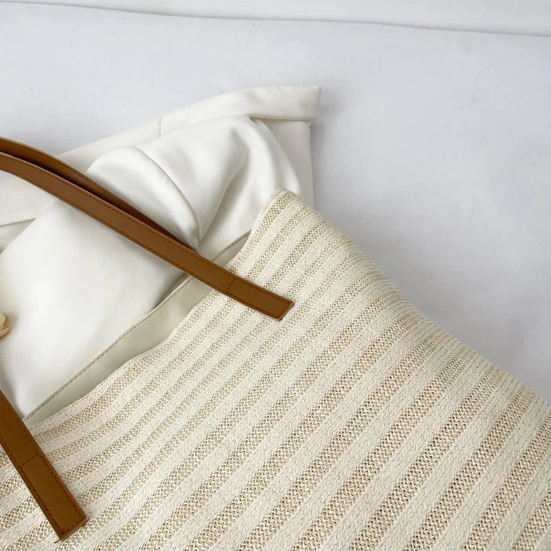 Beach Straw Bag Leather Ladies Shoulder Bag Canvas Travel Tote