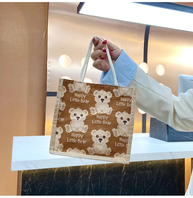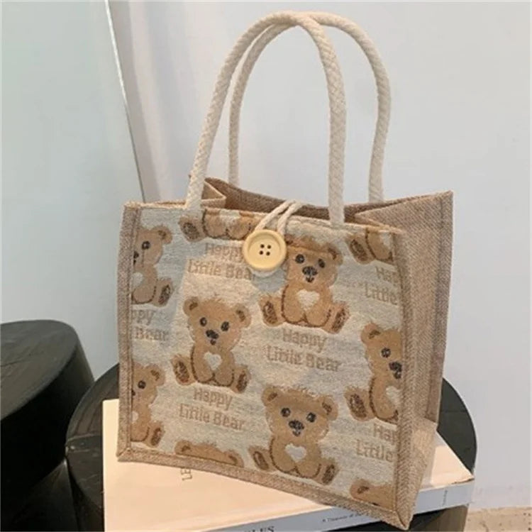 Bear Linen Female Handbag Net Red Small Satchel Student Shoulder Bag