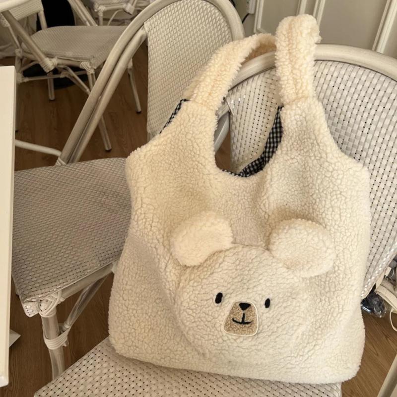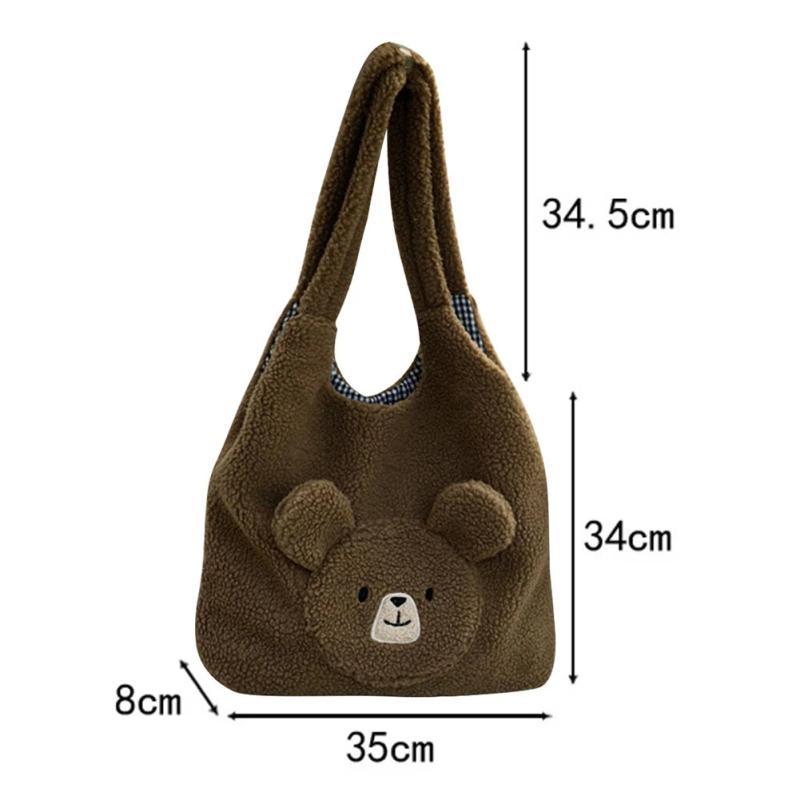 Bear Pattern Plush Shoulder Bag Large Capacity Tote