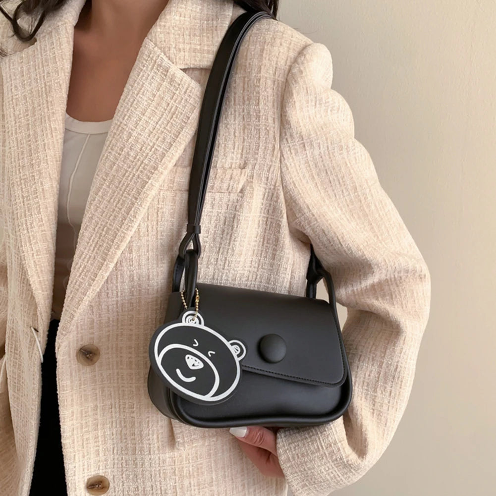 This small satchel bag features a cute bear pendant and is made of soft PU leather. It can be used as a messenger bag, purse, shoulder bag, or shopper bag.