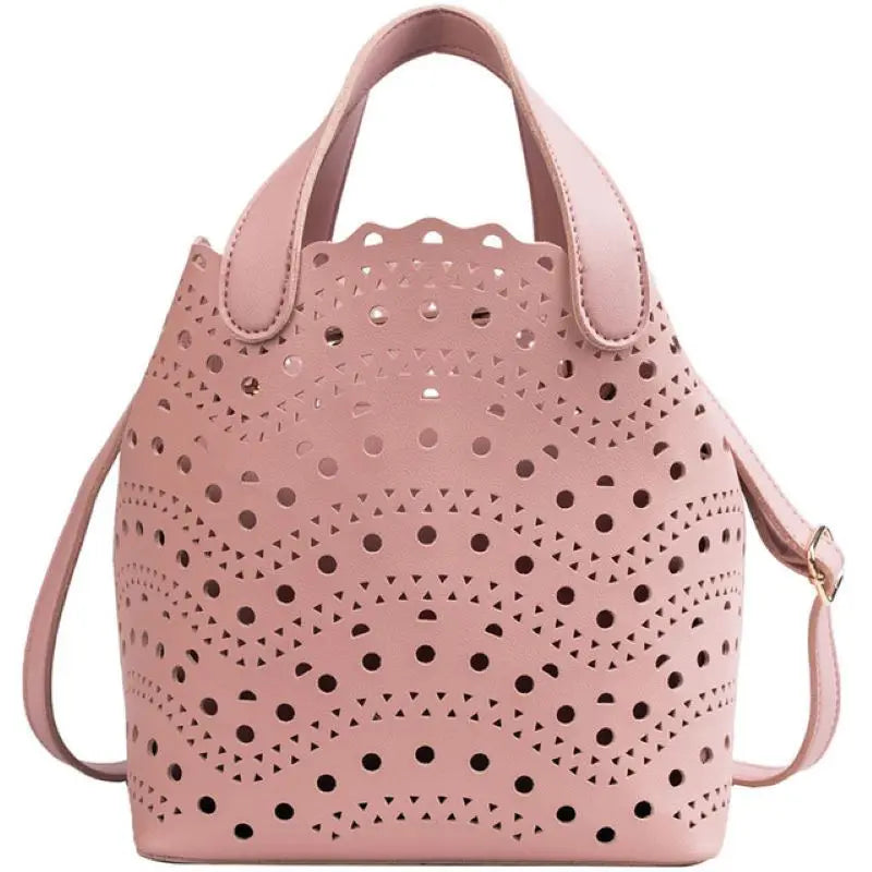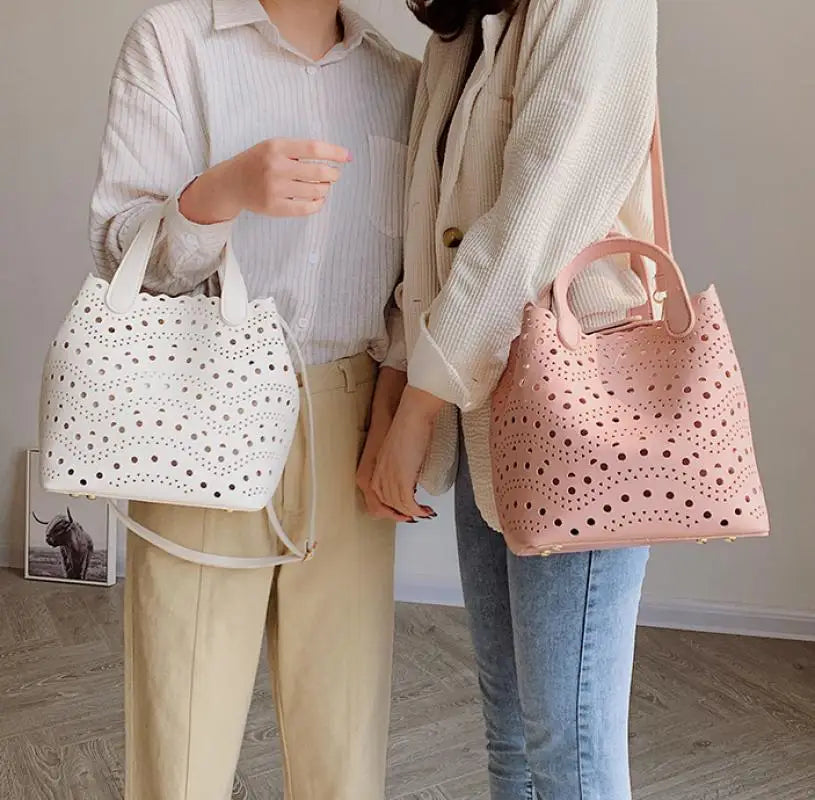 Description:This beige tote bag is made of high-quality leather with a sweet hollow out design featuring tassels. It's a perfect casual shoulder bag for ladies.Features: High-quality beige leather material Large capacity for all your essentials Sweet hollow out design with tassels Casual bucket bag style Perfect for everyday use This...