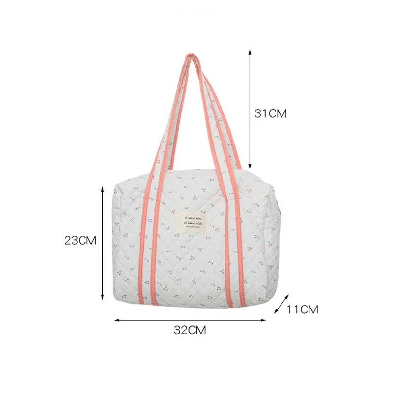 This large capacity mommy handbag is perfect for travel with its floral pattern quilted cotton design.