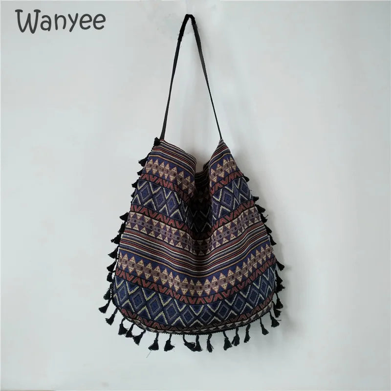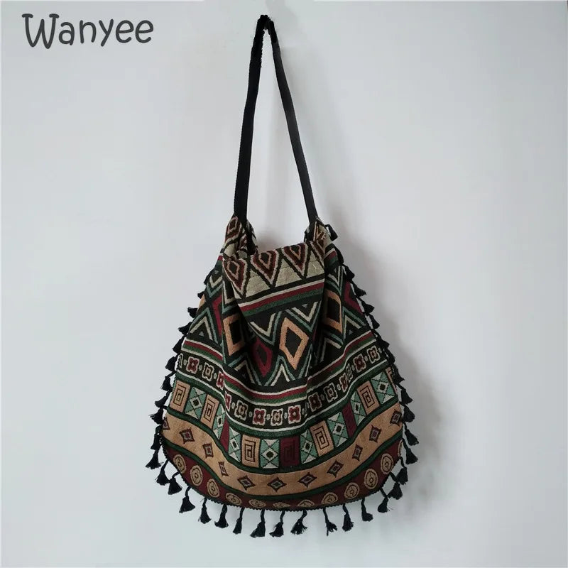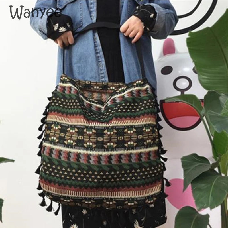 Boho Vintage Messenger Bag Ethnic Style Tassel Shoulder Handbag