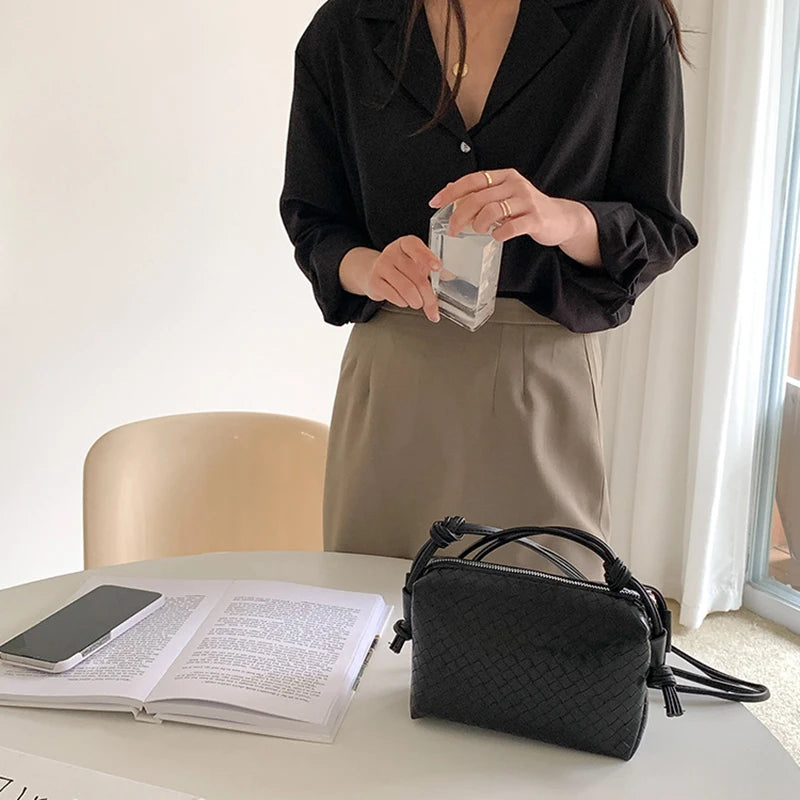 Braided Mini Shoulder Bag Small Square Handbag Female Niche Purse