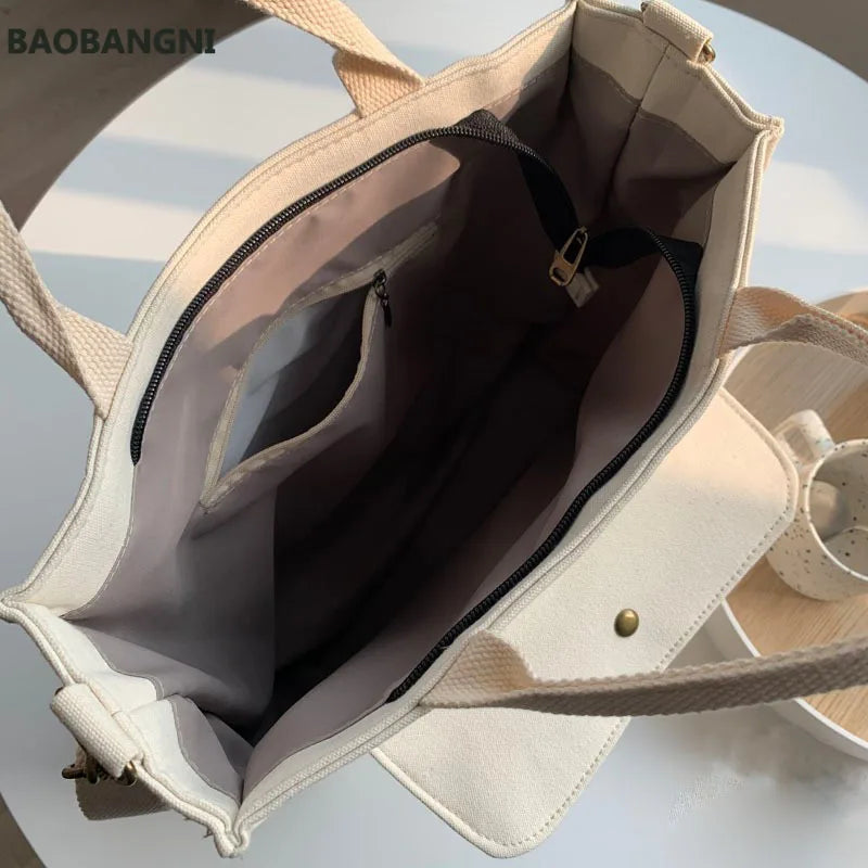 Canvas Casual Tote for College Girls Shoulder Bag