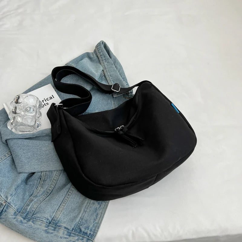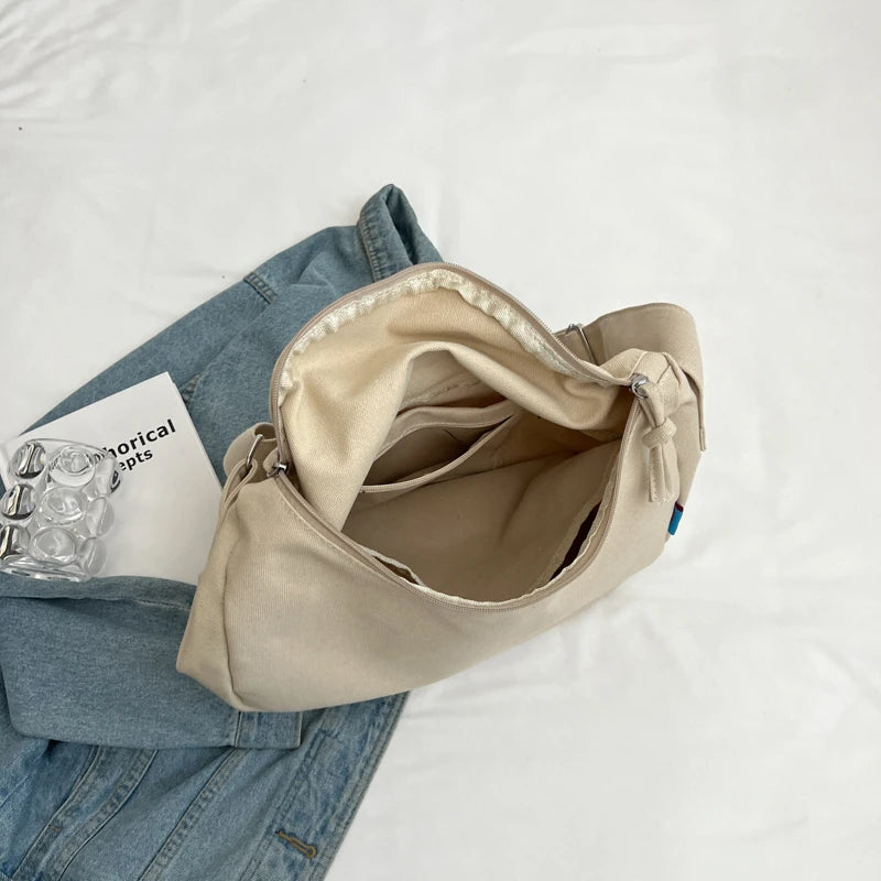 Canvas Crossbody Bags Girls Student Cross-body Schoolbag Solid Shoulder Bag