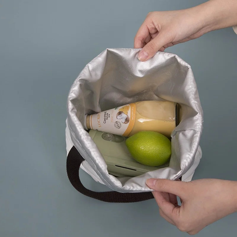 Keep your food fresh and cool with this canvas lunch bag featuring a foil lining. Perfect for picnics, school, and everyday use.