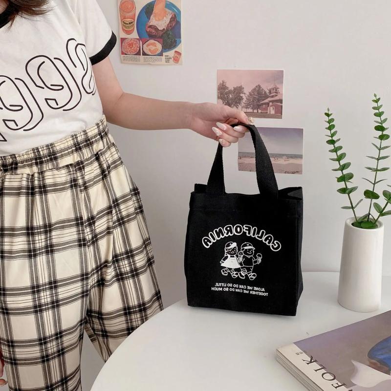 Canvas Lunch Bag Picnic Tote Small Handbag Pouch Food Storage Bags for Ladies