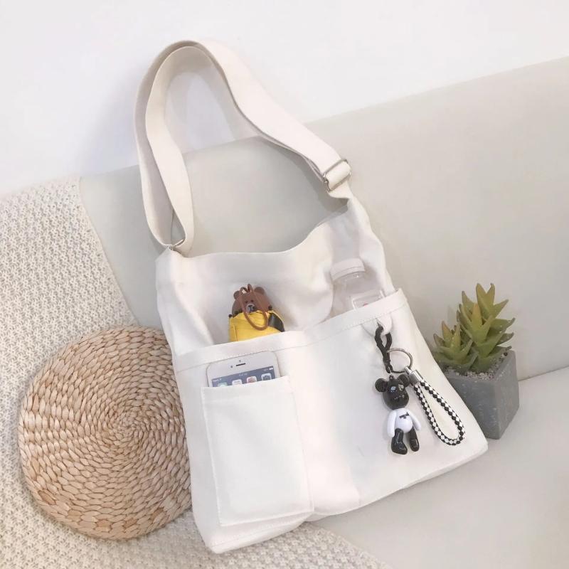 Canvas Messenger Bag Solid Handbag Tote Shoulder Book Bag Female School Bags