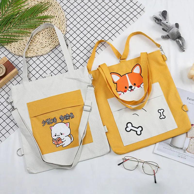 This versatile canvas bag is perfect for students and dog lovers. It can be used as a messenger bag, shoulder bag, or backpack, making it ideal for carrying books, supplies, and more.