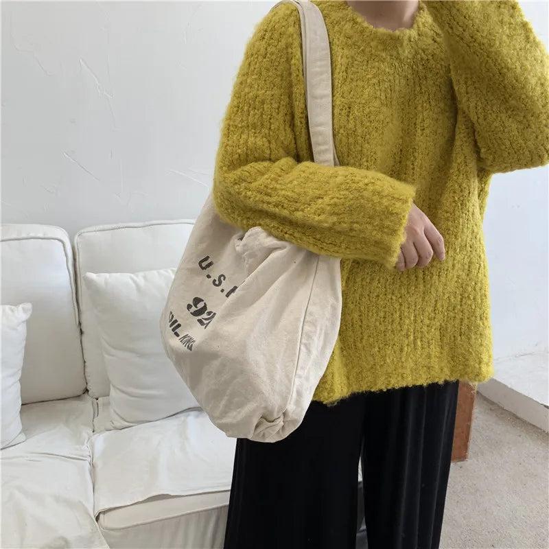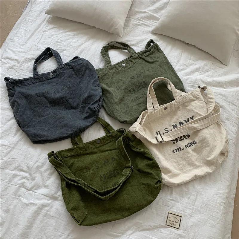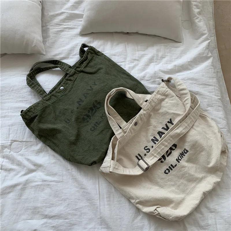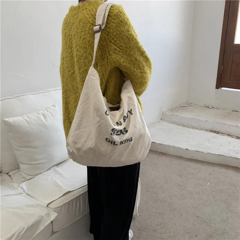 This canvas one-shoulder messenger bag is perfect for shopping and everyday use. The letter printing adds a stylish touch to the bag.