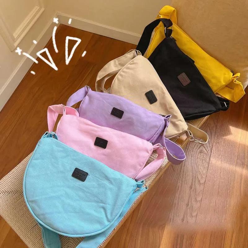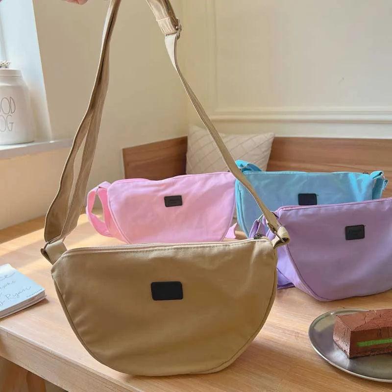 This messenger bag is made of high-quality cotton canvas material, perfect for everyday use. It features a zipper closure and a comfortable shoulder strap for easy carrying.