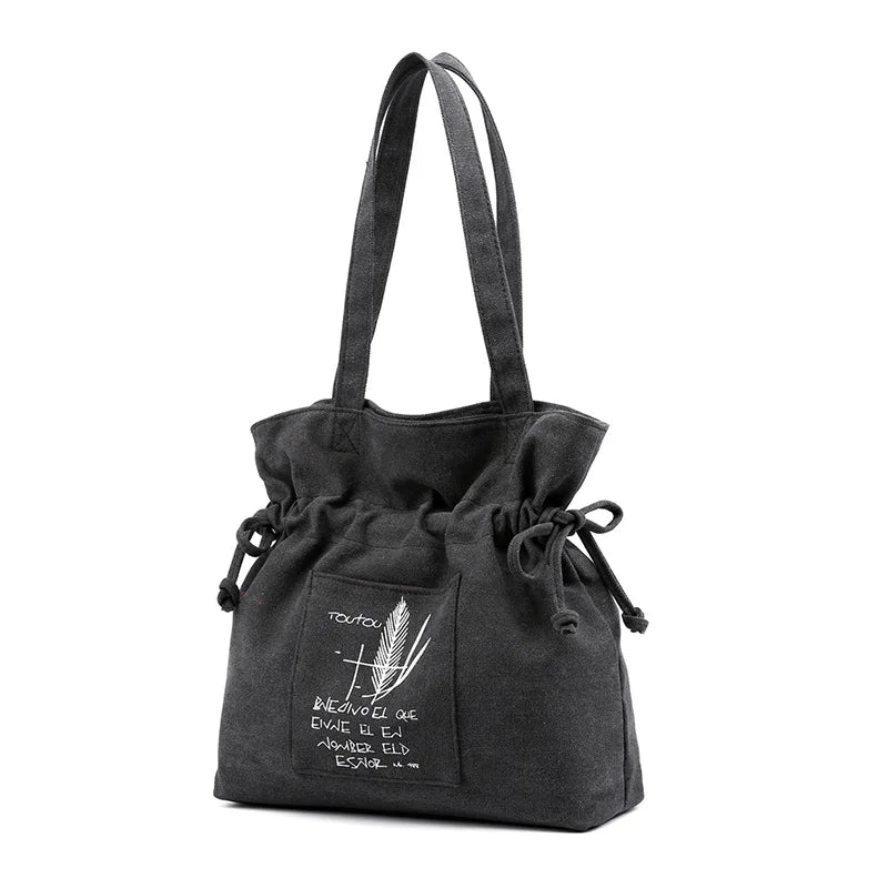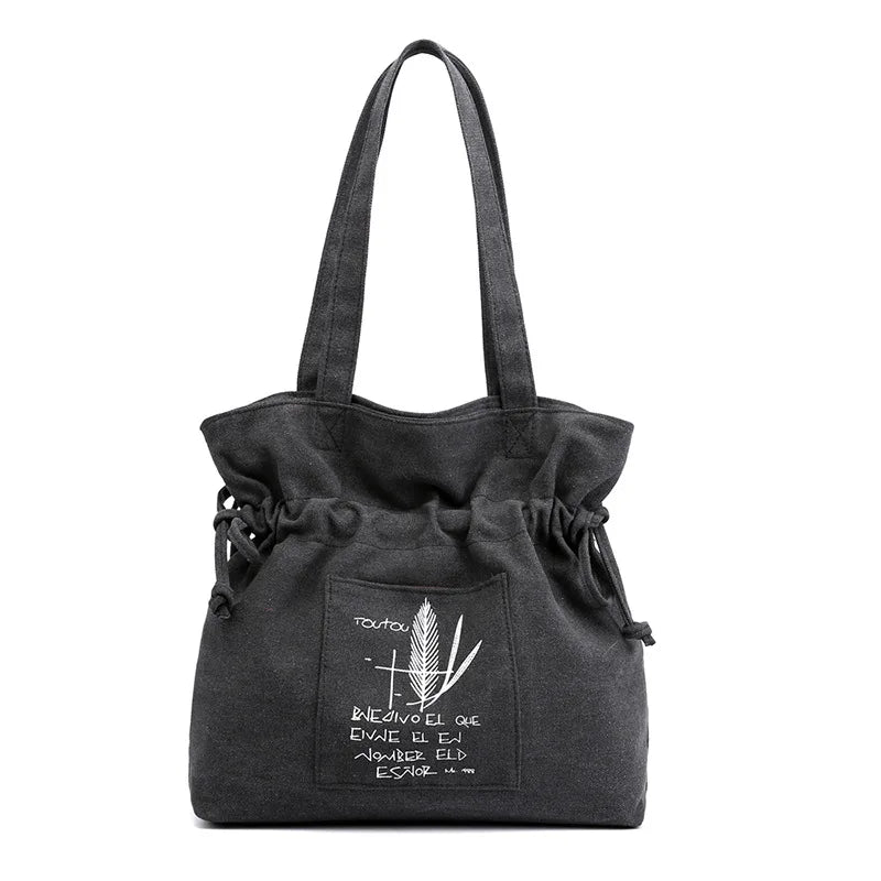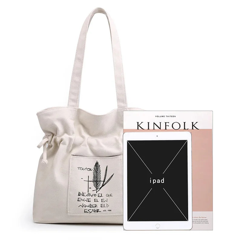 This canvas tote bag is perfect for travel with its large capacity and pleated design. The shoulder bag is a versatile accessory for daily use.
