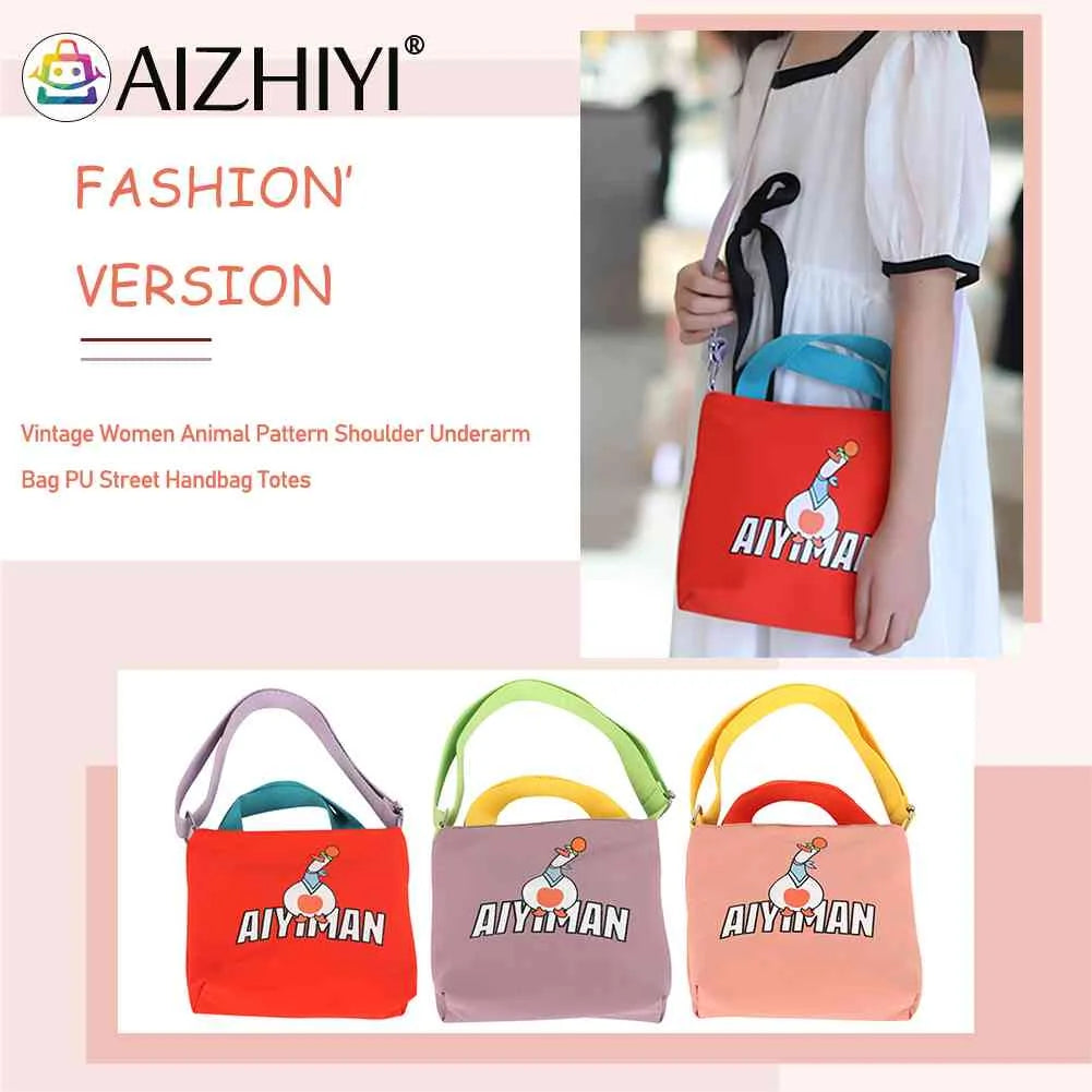 Canvas Shoulder Tote Bag Cartoon Messenger Handbag Animal Prints Zipper