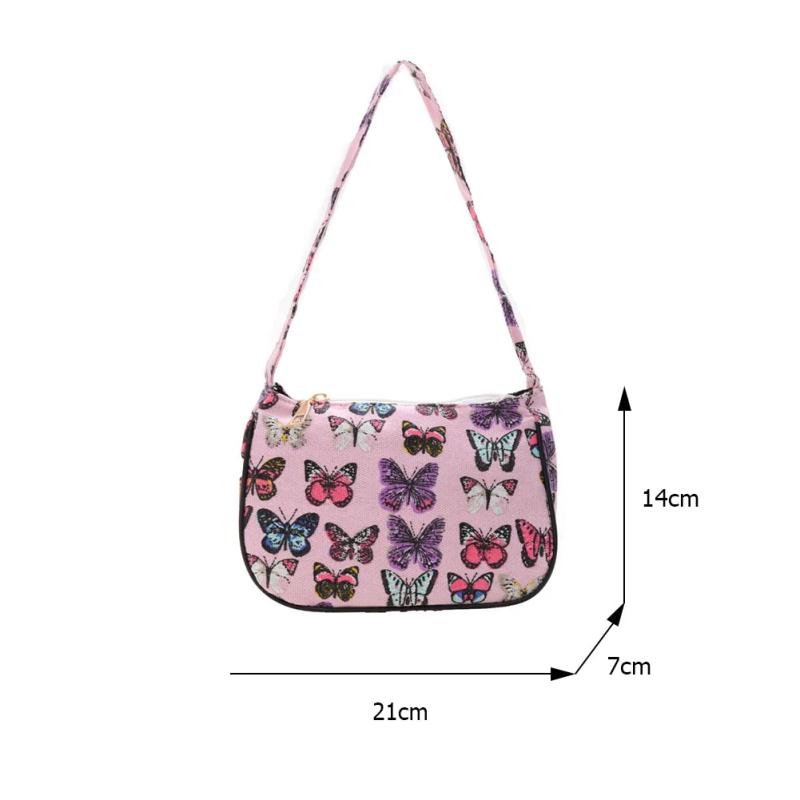 Canvas Underarm Bag Vintage Mini Daisy Butterfly Plaid Handbags