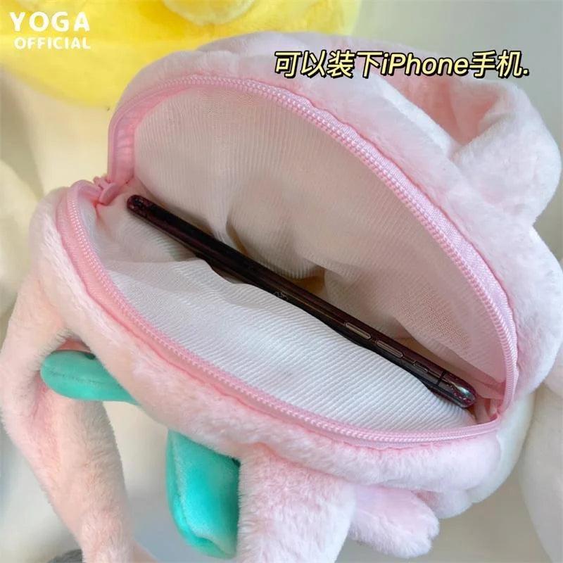 Adorable girl cartoon dog plush doll handbag ideal for young girls to carry their belongings. Can be used as a small mobile phone bag or shoulder tote bag.