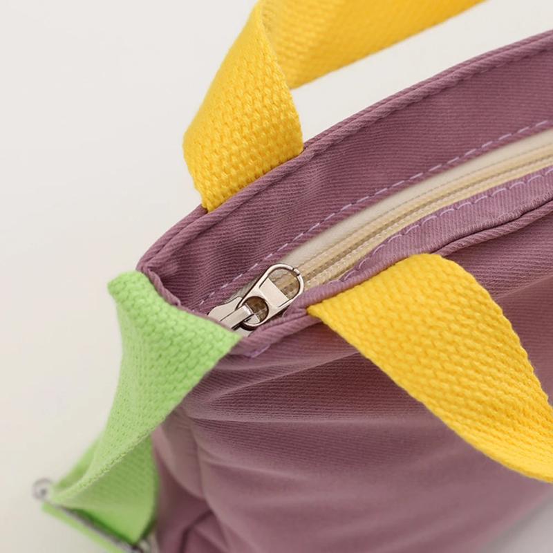 This canvas shoulder bag features cute cartoon animal prints and a convenient zipper closure. It is multipurpose and perfect for everyday use.