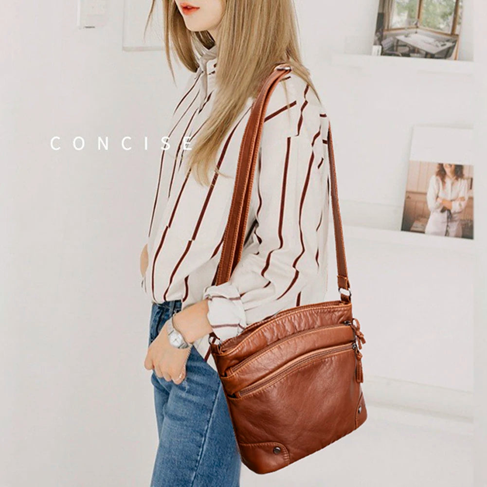 Casual PU Leather Handbag Solid Mother Shoulder Crossbody Bag