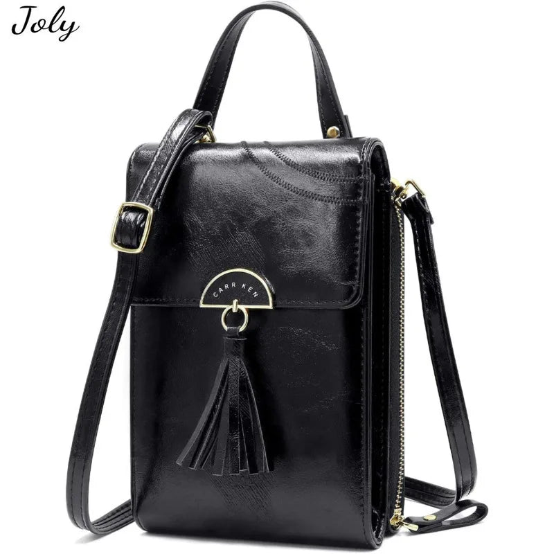 Cell PU Leather Small Cross Body Mini Wallet Purse Bag - Black