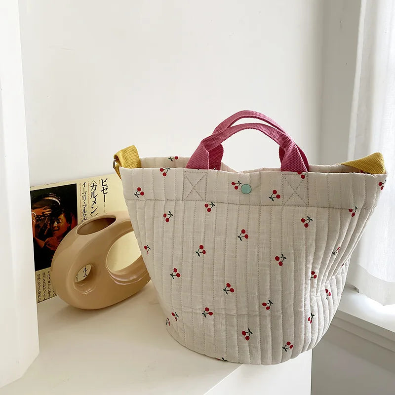 Cherry Pattern Diaper Bag Canvas Mommy Handbag