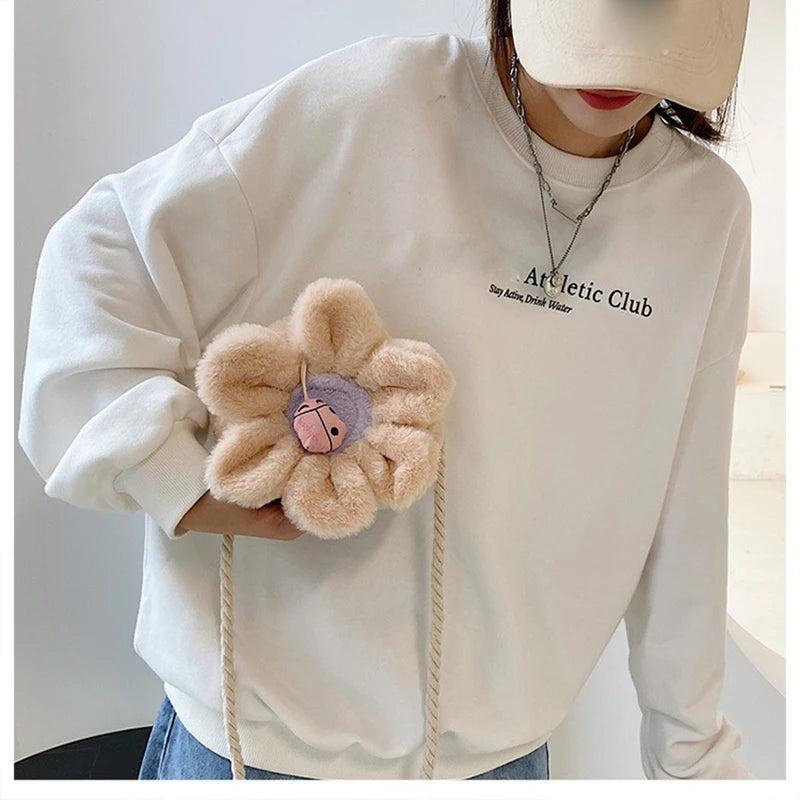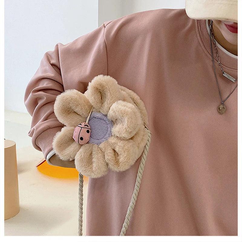 Child Purse Sun Flower Bag Crossbody Handbag Wool Cute Shoulder Bag Plush