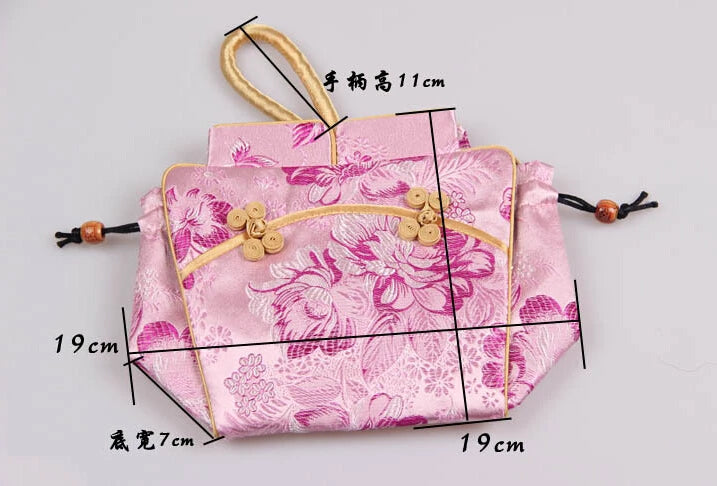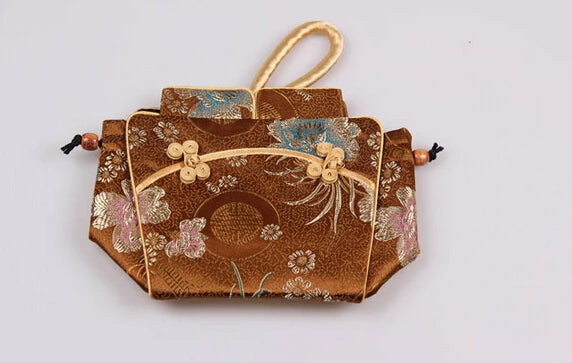 This beautifully crafted handbag features intricate Chinese/India silk embroidery, perfect for adding a touch of elegance to your outfit.