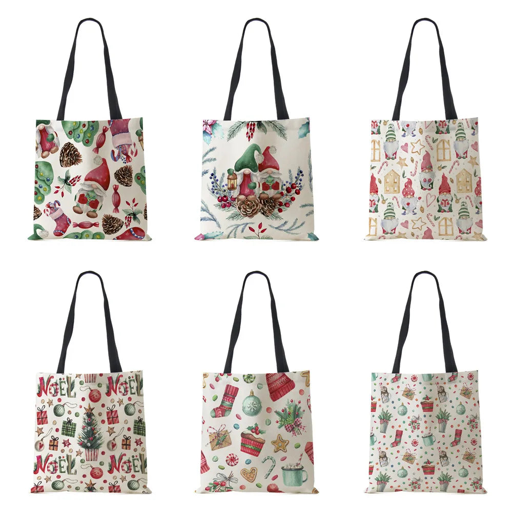 Christmas Santa Claus Harajuku Canvas Shopper Bag Large Capacity Handbag