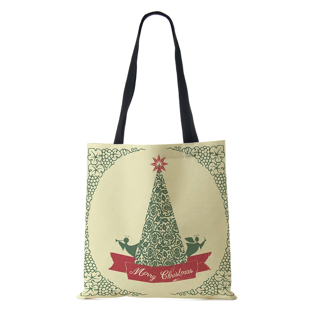 Christmas Snowman Hat Shopper Bag Merry Christmas Tree Shoulder Bag