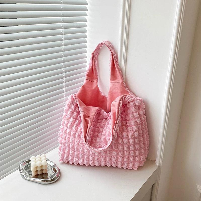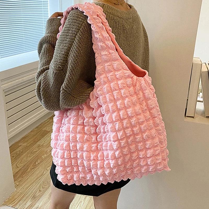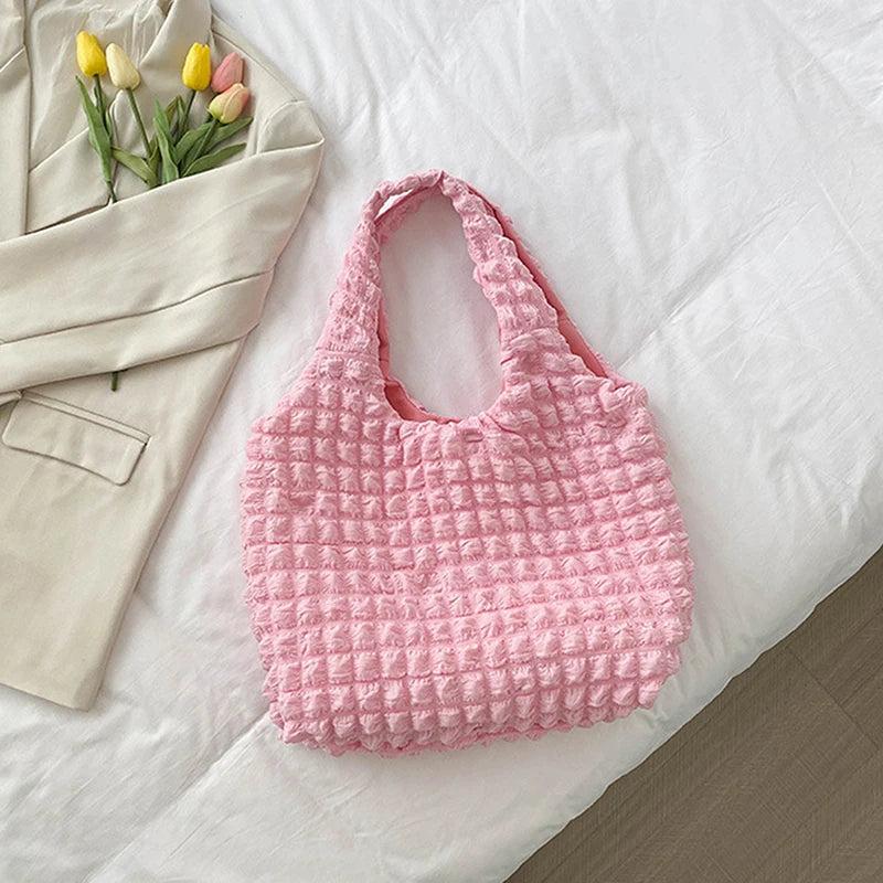 Cloud Bubble Flower Shoulder Bag Girls Soft Plaid Shopping Bags Handbags