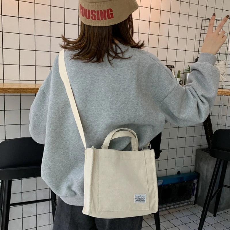 This small square bag in corduroy offers a leisurely and solid retro style, ideal for everyday use. Can be worn as a one-shoulder or crossbody bag.