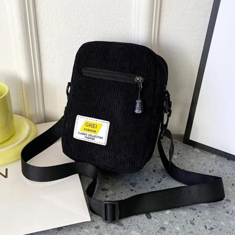 This all-match ladies shoulder bag is made of corduroy material and features multiple layers with a zipper closure. Perfect for everyday use.