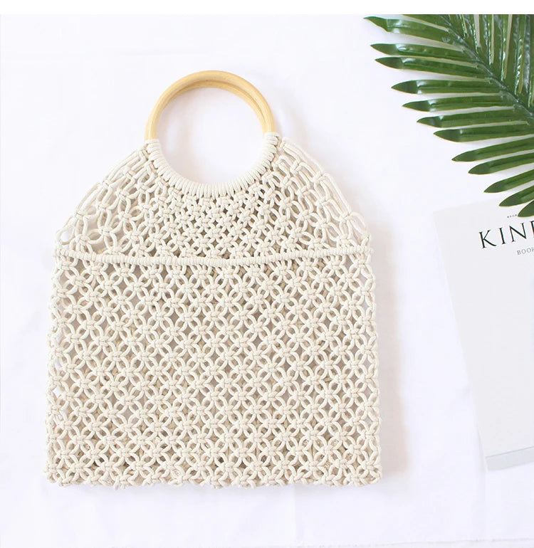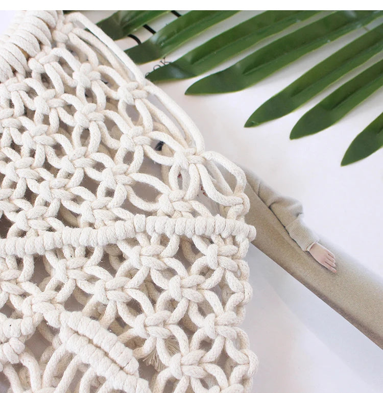Cotton Rope Hollow Straw Bag Macrame Tote Vintage Handbag