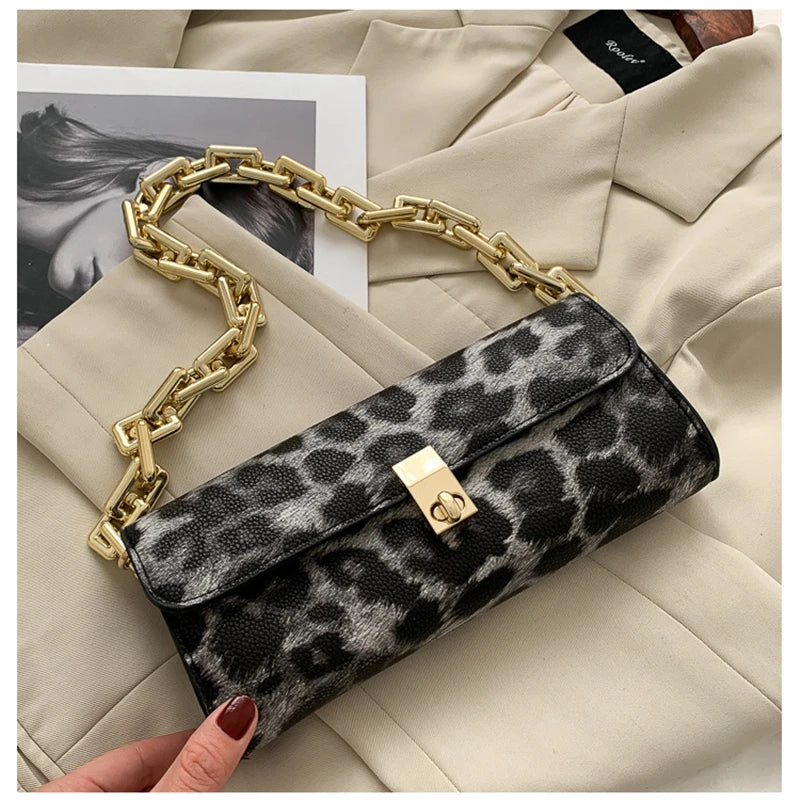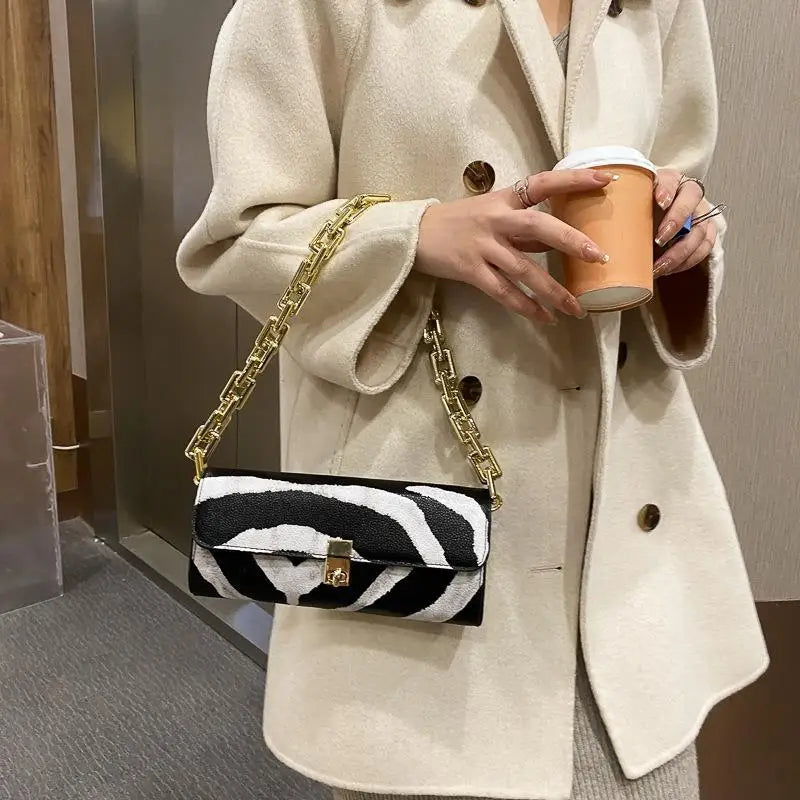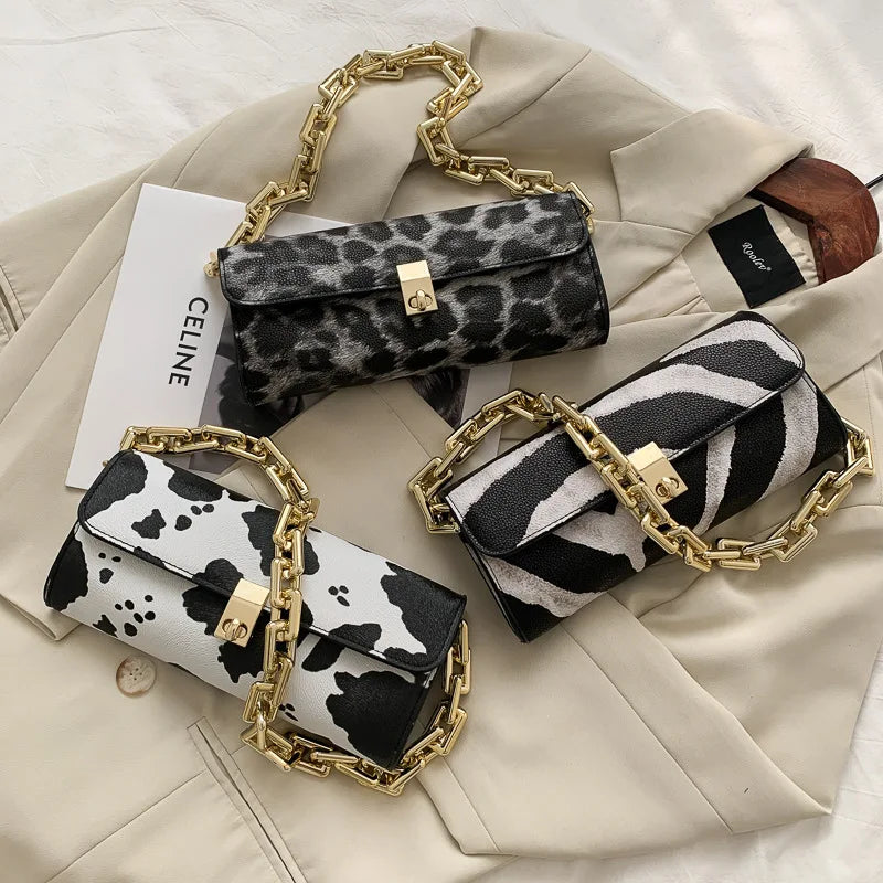 Cow Pattern Chain Shoulder Handbag Lock Shopping Travel Wallet Bag