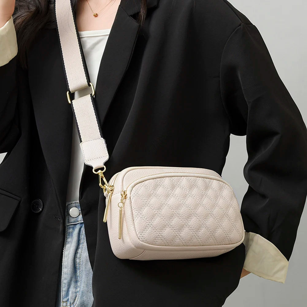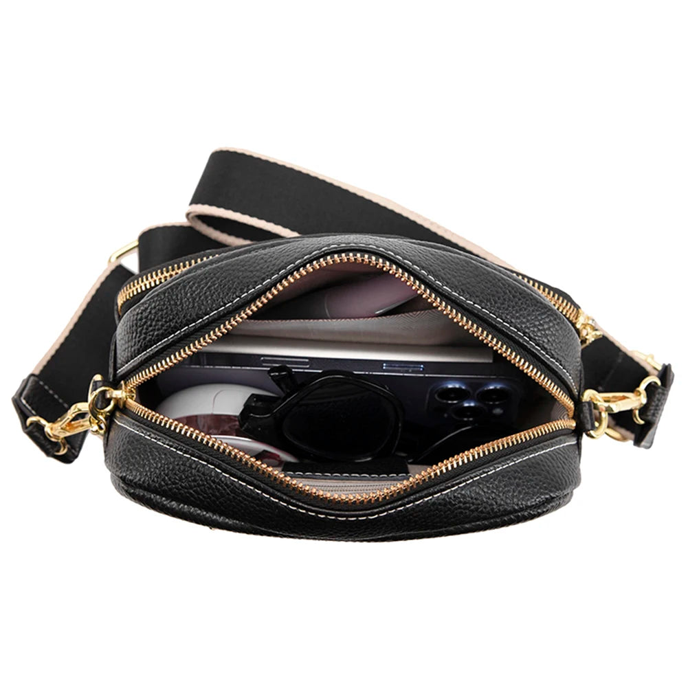 Stay stylish and organized with this multi-layer pocket messenger bag made of high-quality cowhide leather. It features a wide strap and rhombus pattern design, perfect for everyday use.