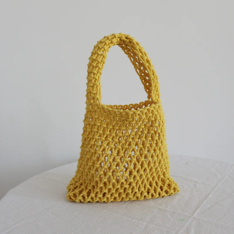 Crochet Hand Knit Bag Macaron Cotton Rope Hollow Out Handbag