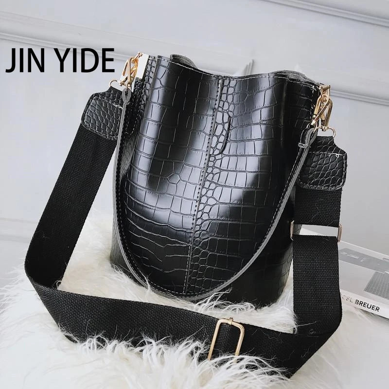 Crocodile Leather Ladies Bucket Shoulder Bag Large Capacity PU Leather Ladies Ha