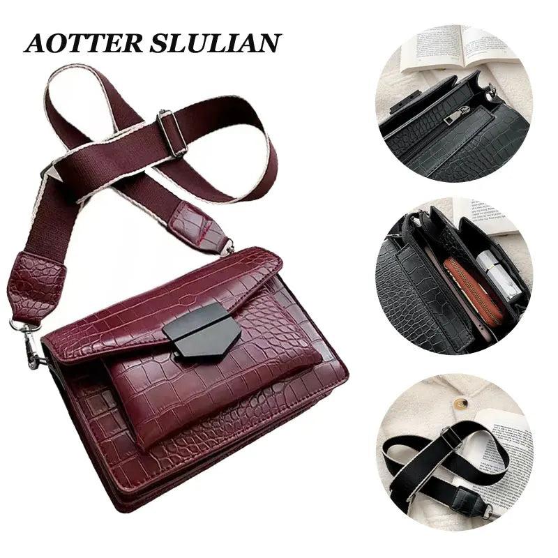 Elegant and stylish crocodile leather messenger handbag perfect for travel and shopping. Features a striped design for a unique look.