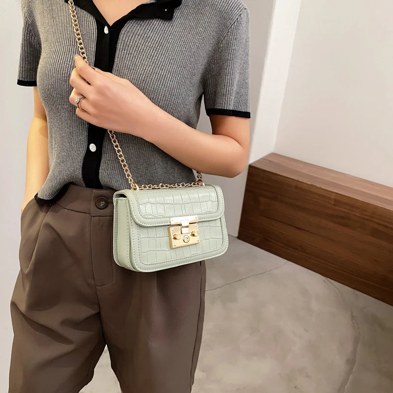 Crocodile Pattern Mini PU Leather Crossbody Bag Chain Shoulder Handbag