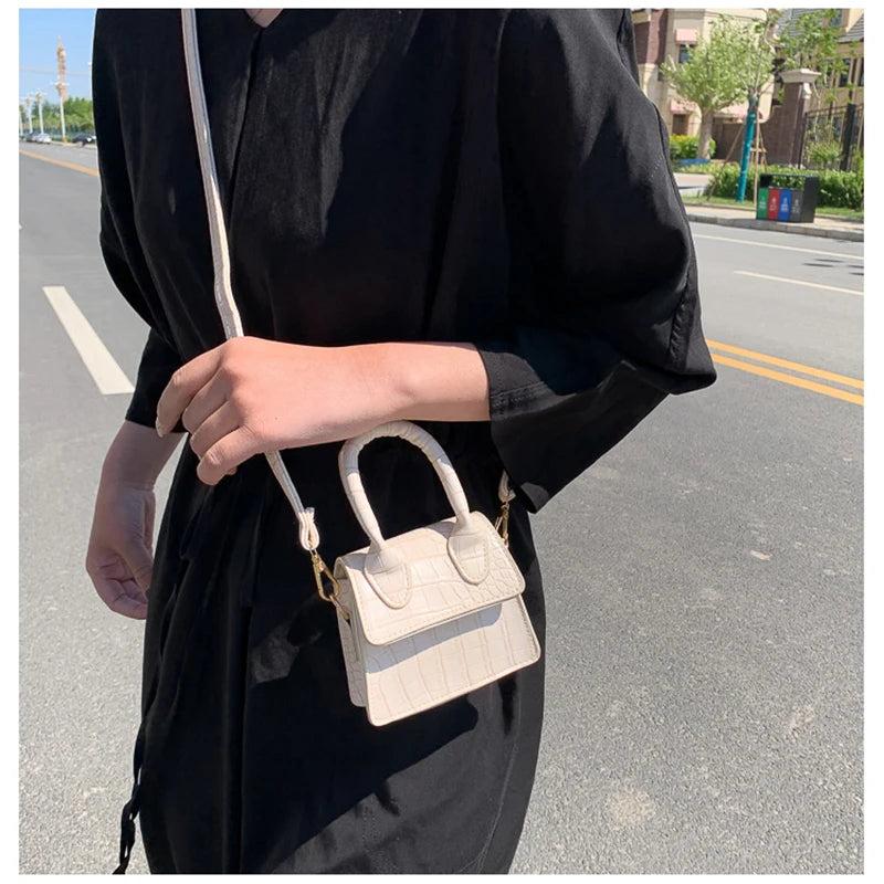 Stay stylish with this trendy crocodile pattern mini tote bag that can be worn as a crossbody or shoulder handbag.