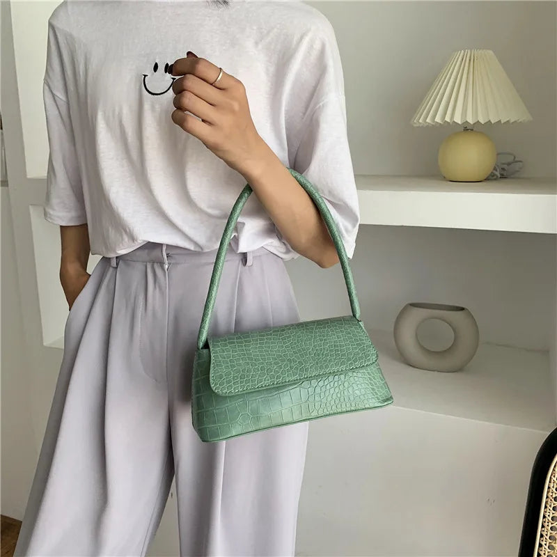 Crocodile Pattern Shoulder Bag Retro Pu Underarm Female Handbag