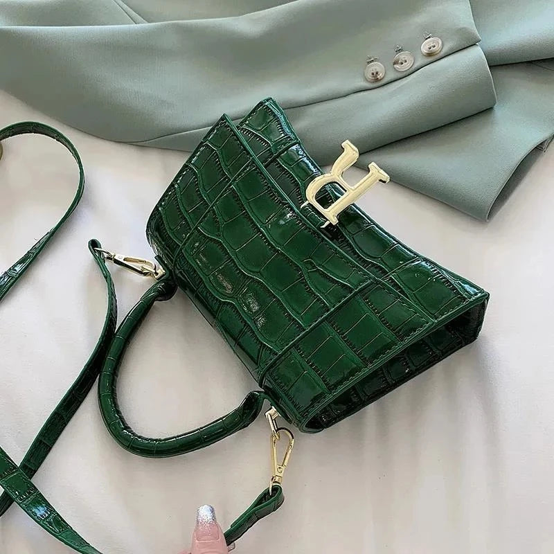 Elevate your style with this chic crocodile print leather crossbody bag. Perfect for everyday use or a night out.