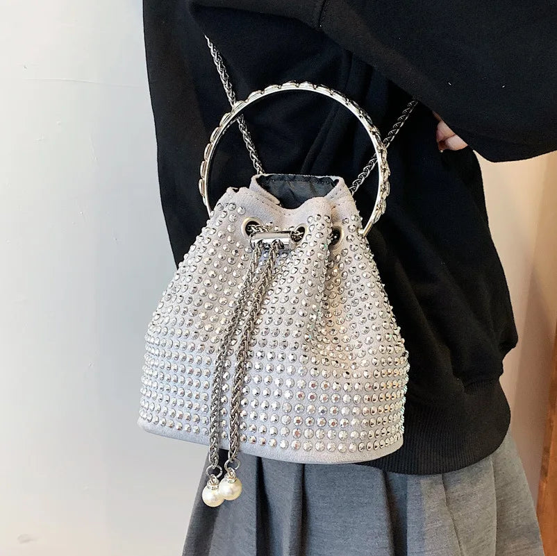 Crystal Bucket Bag Metal Handle Shoulder Messenger Bag