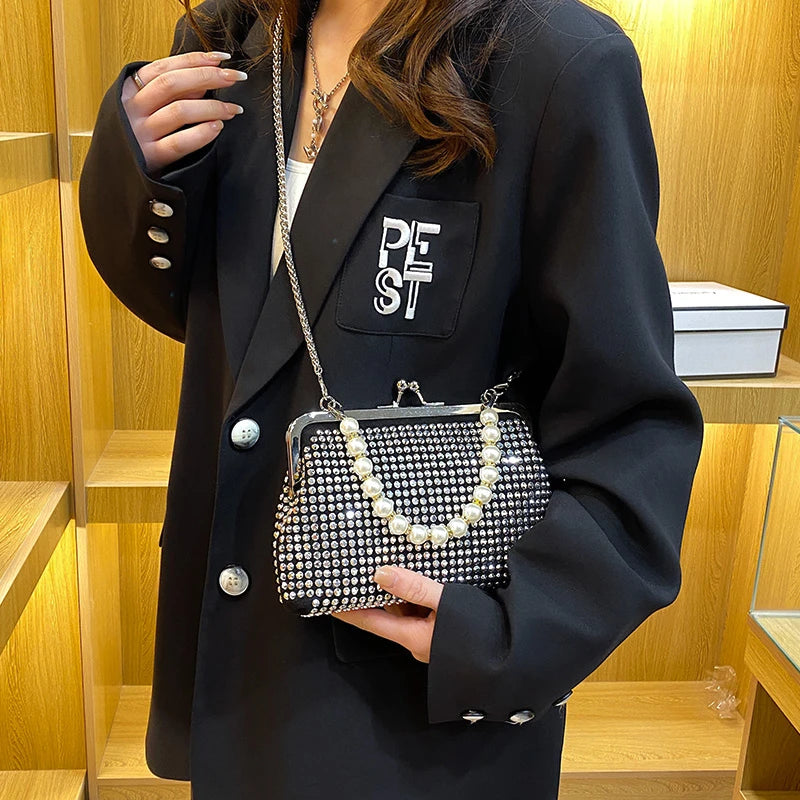 Description:This rhinestone leather crossbody bag is perfect for fashion-forward girls. It features a locomotive design with a chain strap, ideal for a night out or casual day. The crystal embellishments add a touch of sparkle to your ensemble.Features: Rhinestone leather crossbody bag Locomotive design with chain strap Crystal embellishments for...