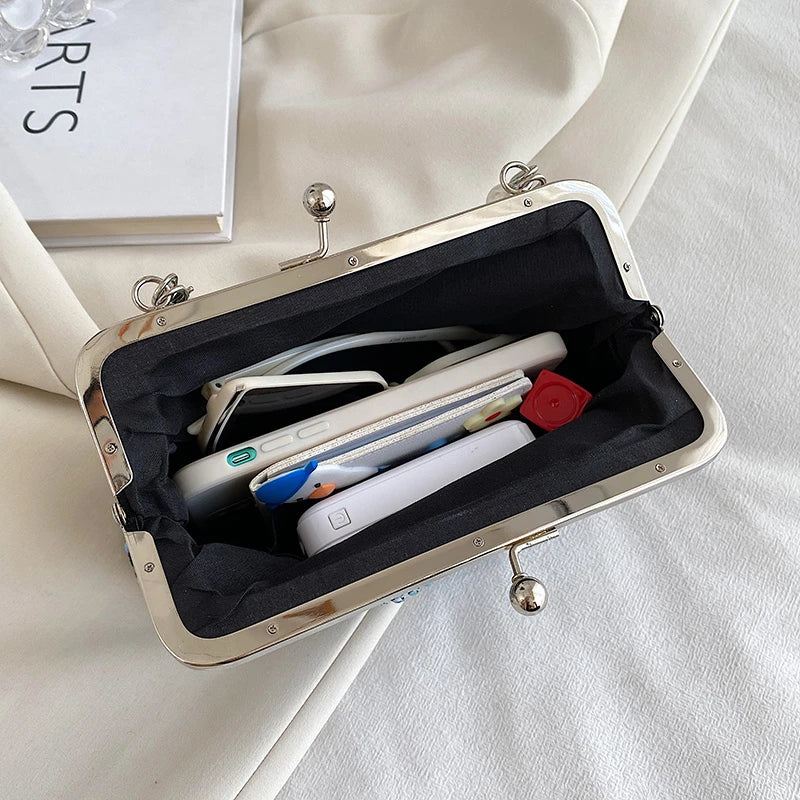 This rhinestone leather crossbody bag is perfect for fashion-forward girls. It features a locomotive design with a chain strap, ideal for a night out or casual day. The crystal embellishments add a touch of sparkle to your ensemble.