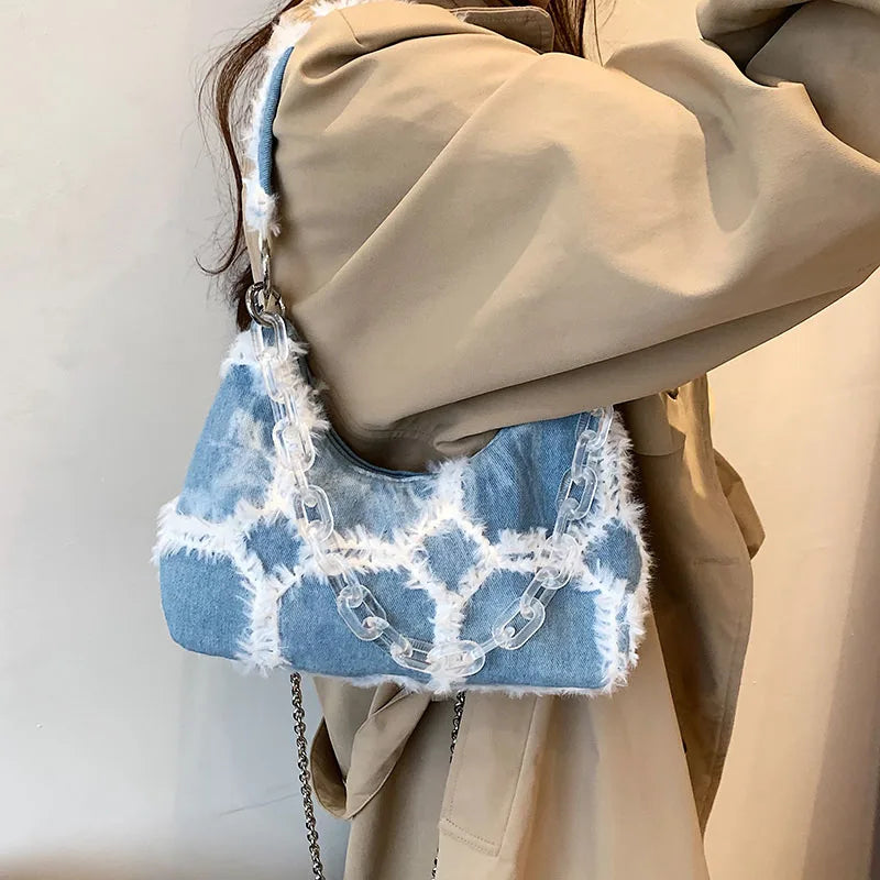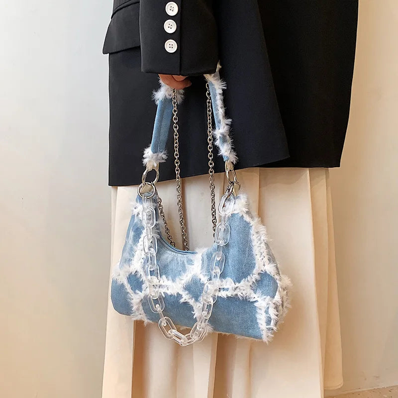 Denim Chain Shoulder Handbag Small Underarm Bag